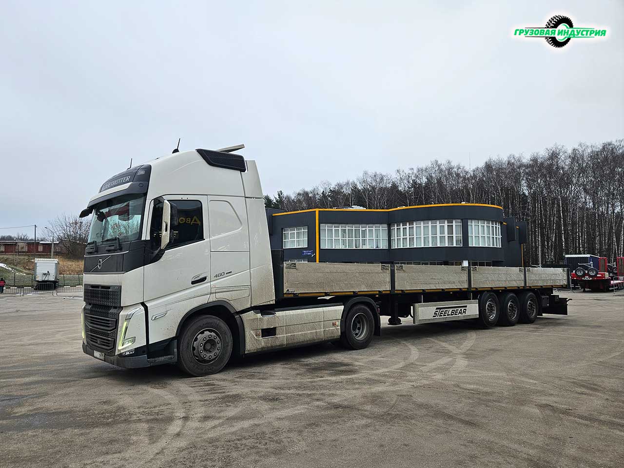Отгрузка сцепки тягач Volvo FH 4x2 и полуприцепа бортовая платформа Steelbear PL-24B в Московскую область.